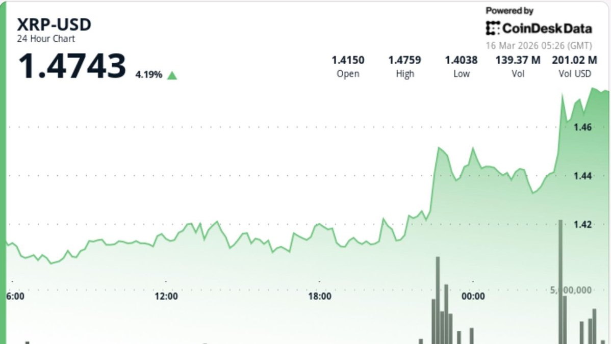 شهدت عملة XRP قفزة هائلة تجاوزت 3% لتتخطى حاجز 1.47 دولار، مدعومة بحجم تداول قفز بأكثر من 250% في حركة جماعية تقودها بيتكوين. هذا الاختراق التاريخي يأتي بعد أشهر من التداول الجانبي، حيث تم كسر مقاومة صعبة عند 1.426 دولار، مما حول الزخم الفني لصالح المشترين بشكل واضح.