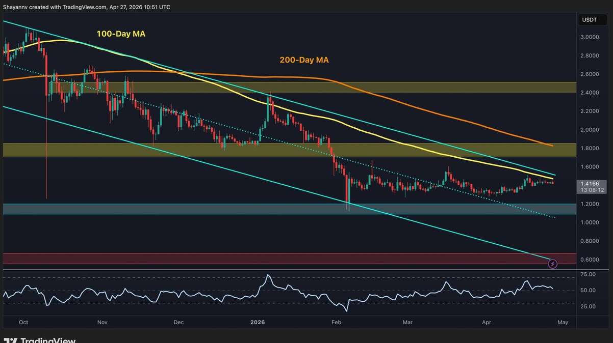 Dark Mode Toggle Ball Crypto News Today Market Updates Margin Trading Guides Videos Price Analysis BTC Analysis ETH Analysis XRP Analysis Bitcoin For Beginners Interviews Editorials DeFi & NFT Buy Crypto Language Bulgarian Turkish Spanish © Copyright CryptoPotato Home » XRP XRP is trading around $1.42 as the broader crypto market finds its footing following weeks of macro-driven turbulence. With Bitcoin regaining some composure and risk appetite gradually returning to digital assets, Ripple’s token is showing early signs of building momentum. The question now is whether this is the beginning of a genuine breakout or simply another false dawn at the upper edge of a months-long descending channel. After spending the better part of Q1 2026 grinding sideways near the lows, XRP has quietly built a modest recovery setup. The asset is currently pressing against the upper boundary of the descend