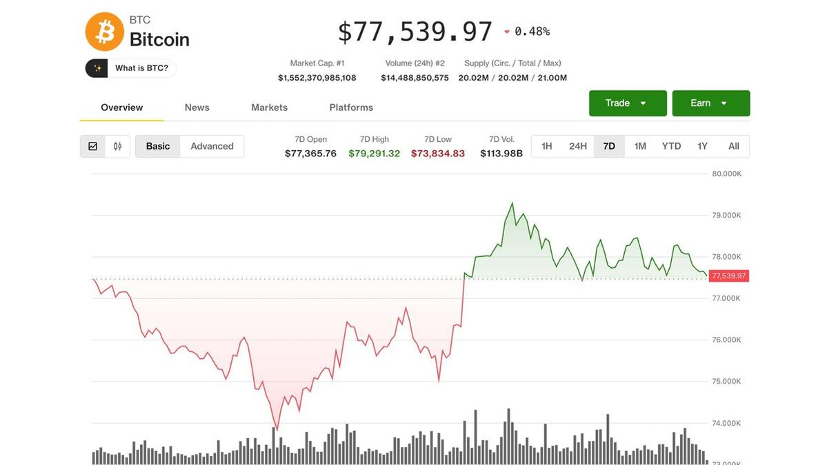 Search/NewsVideoPricesResearchConsensus 2026Data & IndicesSponsoredSearch/enMarketsShareShare this articleCopy linkX iconX (Twitter)LinkedInFacebookEmailBitcoin is on track for its best month in a year. $5 billion USDT growth fuels the reboundStrong earnings season trumps geopolitical risks for now, one trader said, as equities and crypto markets "stopped caring" about Iran war headlines.By Krisztian Sandor|Edited by Nikhilesh De Apr 24, 2026, 9:04 p.m. Make preferred on Bitcoin (BTC) price on April 24 (CoinDesk)What to know: Bitcoin, holding above $77,000 and up over 13% in April, is on pace for its strongest monthly performance in a year after a prolonged losing streak.A sharp increase in the supply of Tether’s USDT stablecoin to nearly $150 billion is boosting liquidity in crypto markets.Traders are watching whether bitcoin can break through the $79,000 resistance level, with the upco