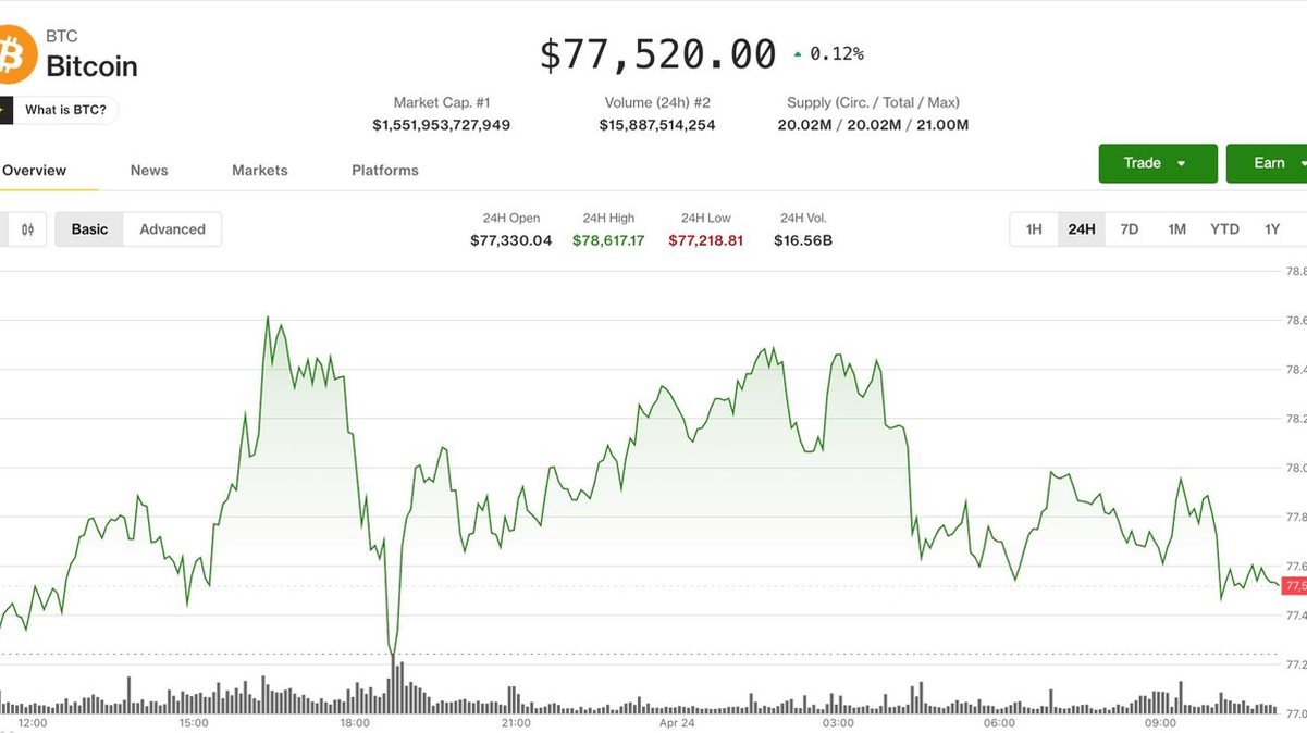 Source: https://www.coindesk.com/markets/2026/04/24/bitcoin-stalls-below-at-usd77-500-as-volatility-cools-traders-unwind-leverage
